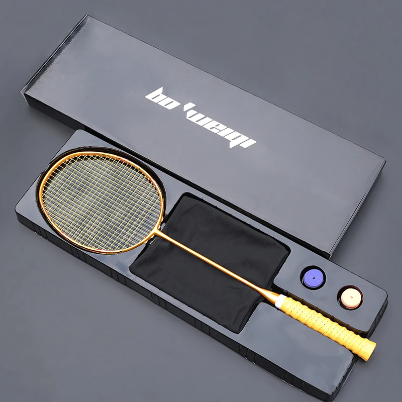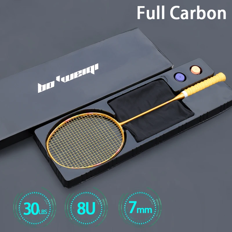 Super Light 8U Carbon Fiber Strung Badminton Rackets With Strings Bags Professional Racquet 24-30lb